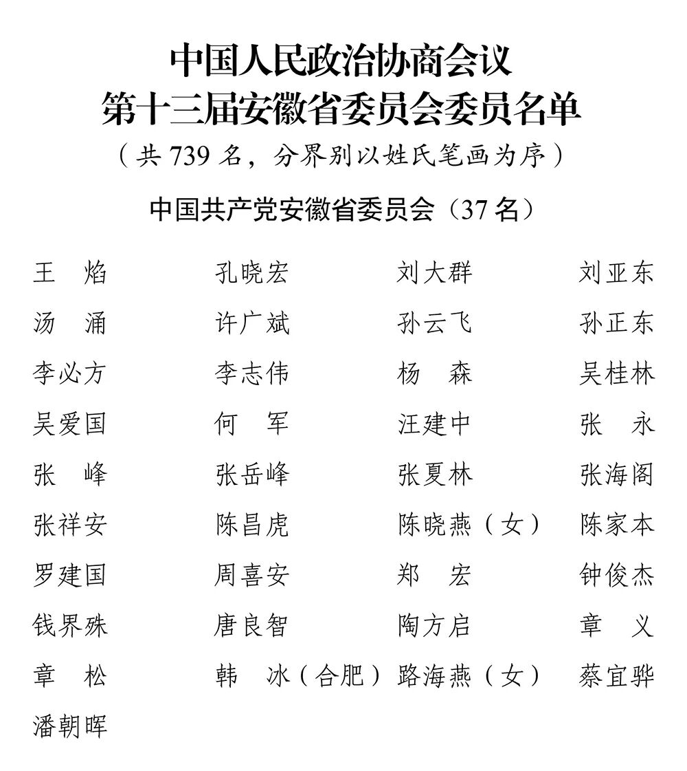 十三届安徽省政协委员名单公布