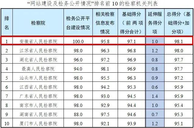 ▲2020年在最高检组织的全国检察机关门户网站建设及检务公开情况第三方检查中,夺得第一。