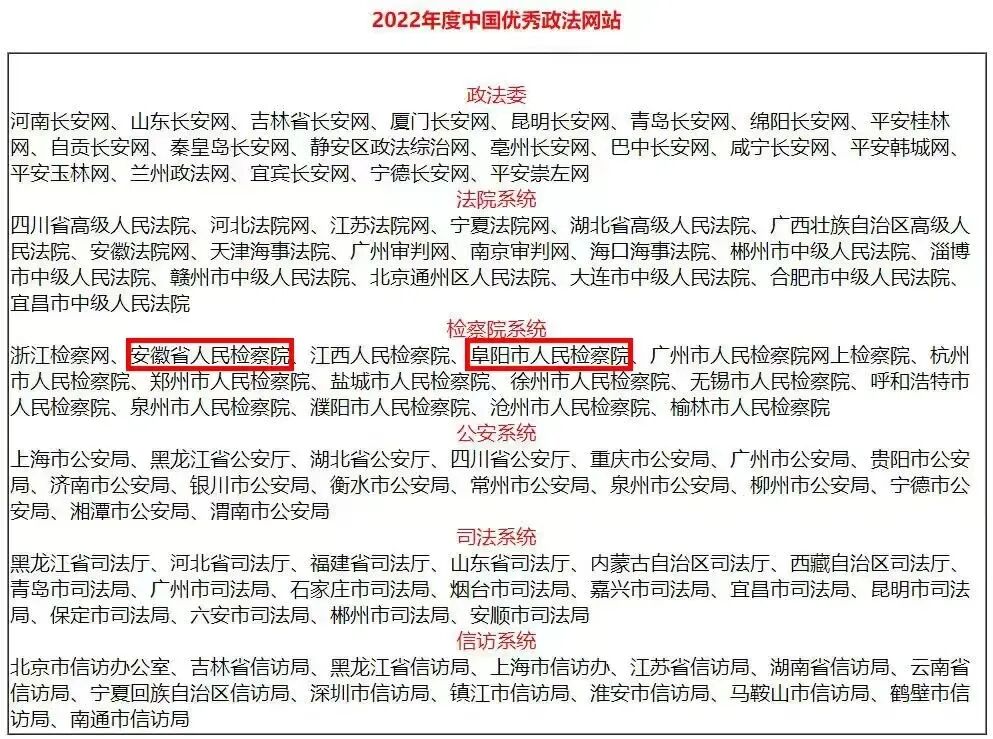▲安徽省检察院获评2022年度中国优秀政法网站