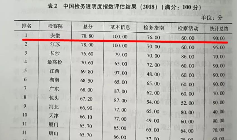 ▲2018年,省检察院检务透明度指数在全国所有被评估院和省级院中,双双夺得第一。