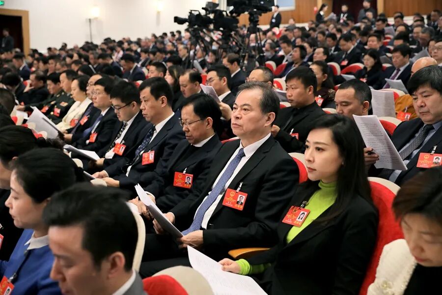 代表委员认真听取报告。记者 刘炜鑫、符秀云/摄