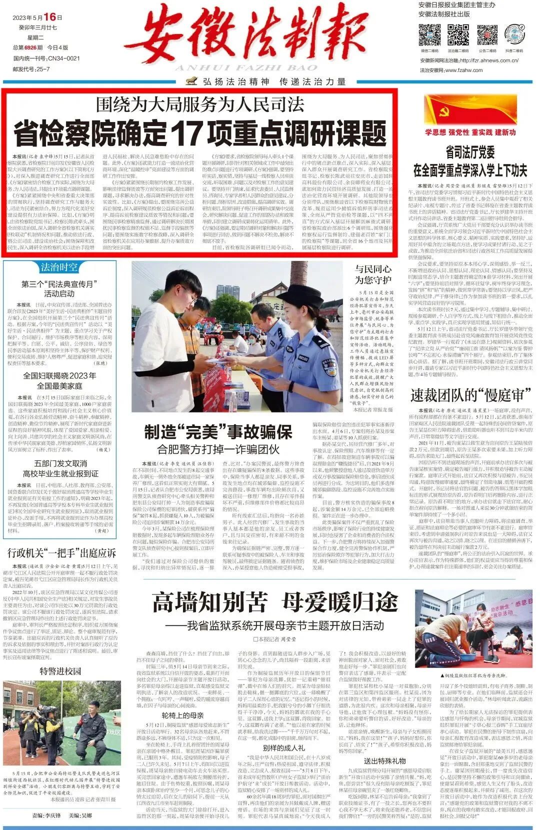2023年5月16日《安徽法制报》头版