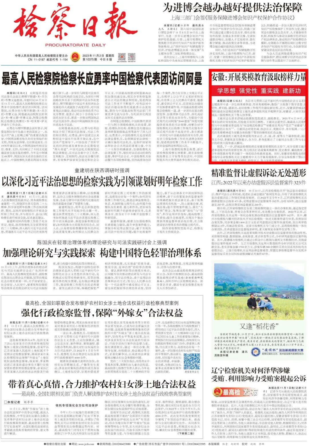 2023年11月2日《检察日报》头版