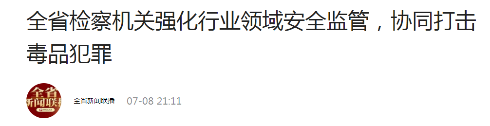 记者从省检察院了解到 我省检察机关积极能动履职,加强与相关部门协作配合,强化监管、堵塞漏洞,依法严厉惩治毒品犯罪,产生了积极良好的法律效果、社会效果。安徽台记者王昕报道: