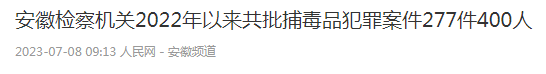 安徽检察机关2022年以来共批捕毒品犯罪案件277件400人