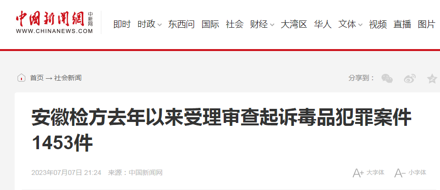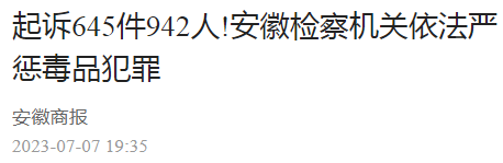 起诉645件942人! 安徽检察机关依法严惩毒品犯罪