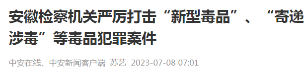 安徽检察机关严厉打击“新型毒品”、“寄递涉毒”等毒品犯罪案件