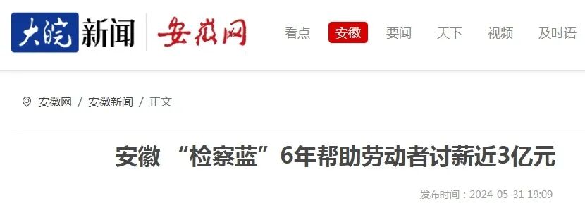 安徽 “检察蓝”6年帮助劳动者讨薪近3亿元