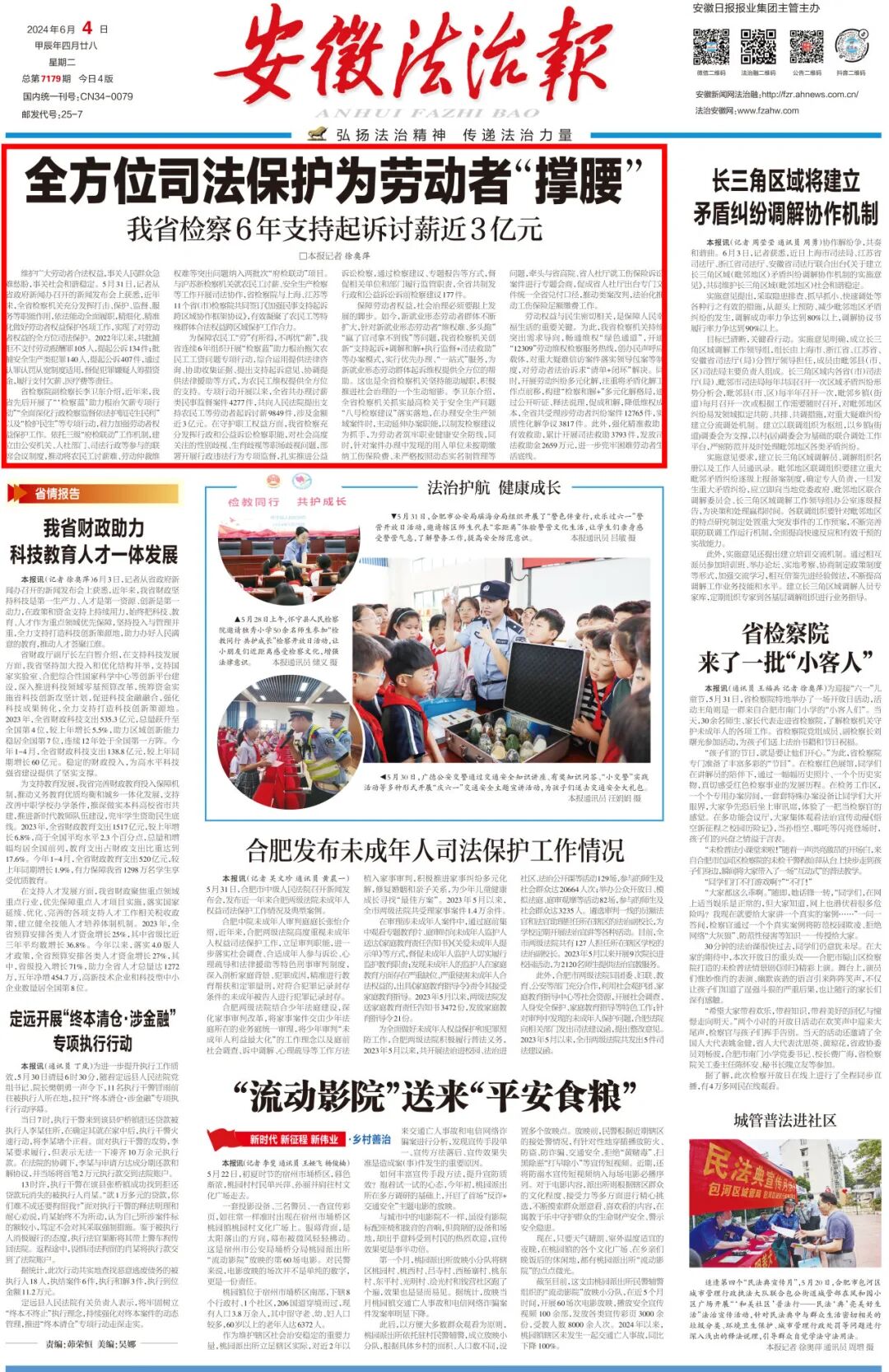 2024年6月4日《安徽法治报》头版头条