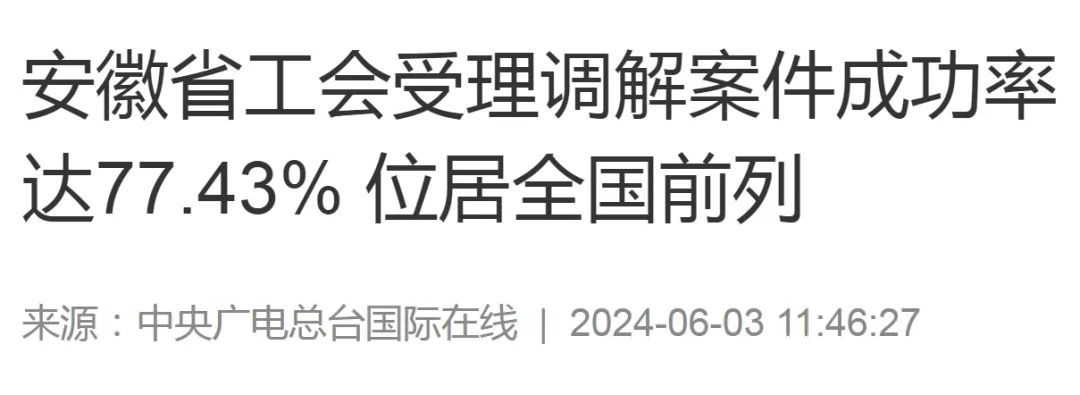 安徽省工会受理调解案件成功率达77.43%,位居全国前列