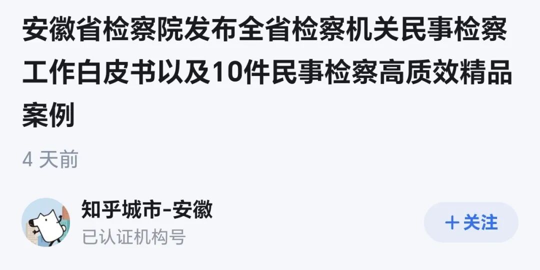 发布会上,安徽省人民检察院还发布了十个全省检察机关民事检察高质效精品案例。