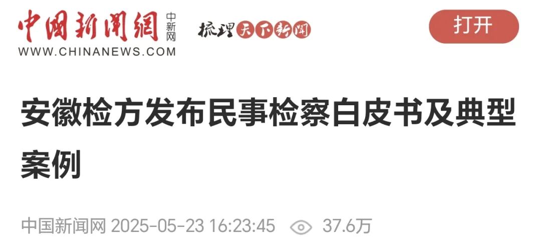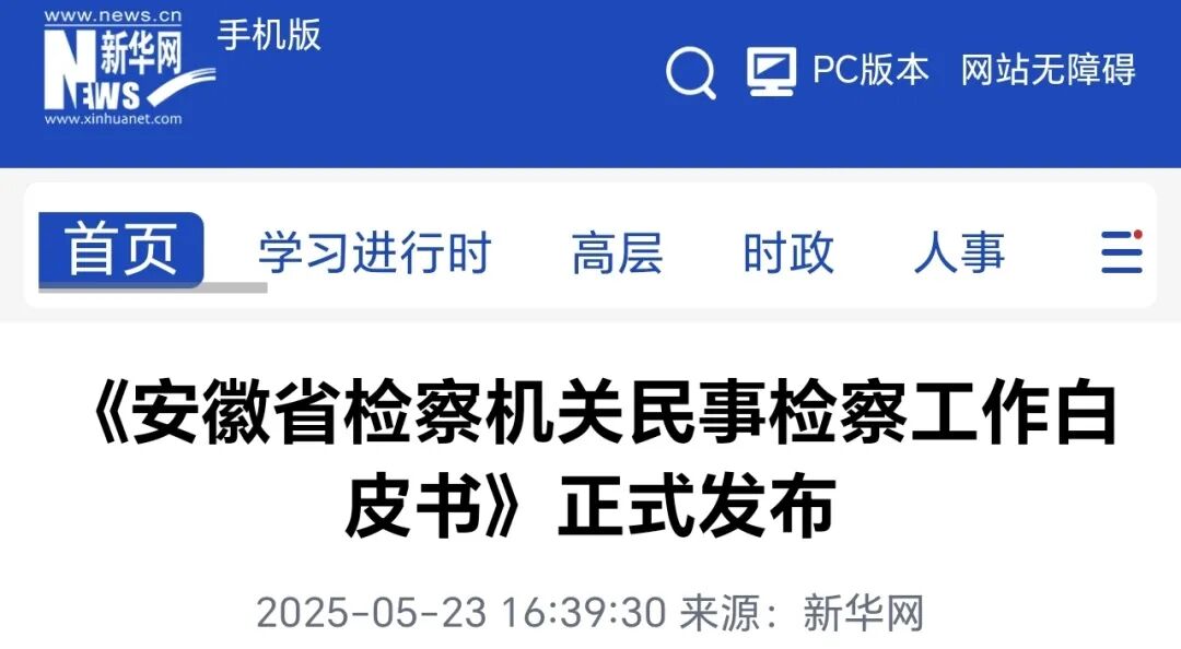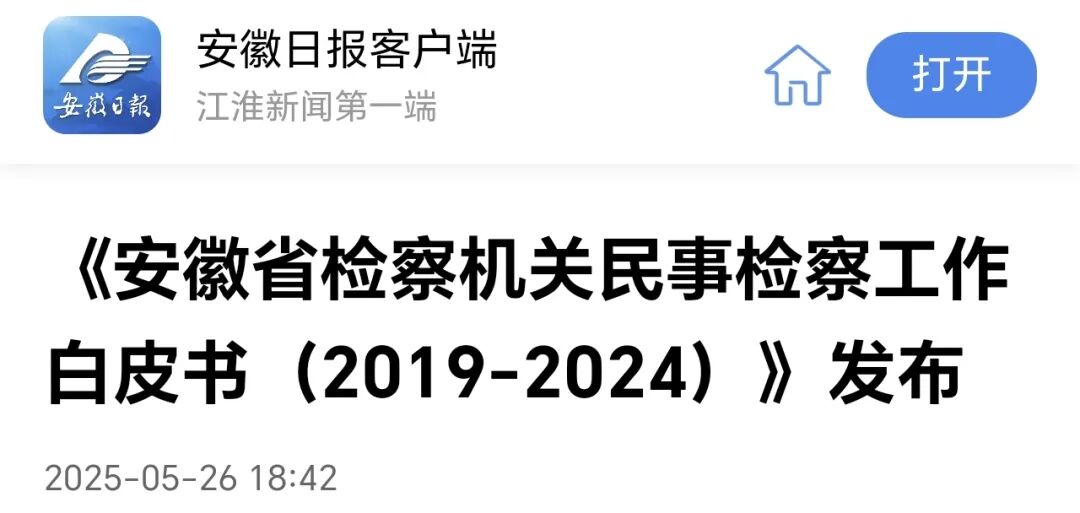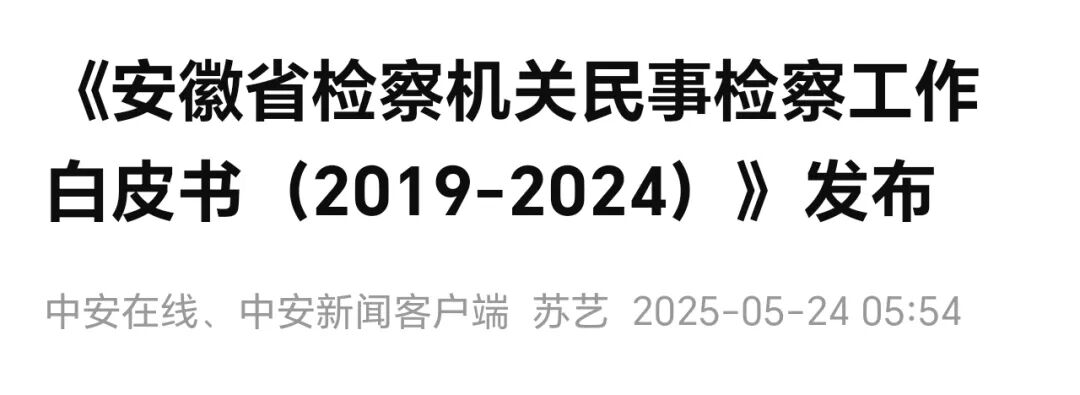 为让社会各界更好地了解全省民事检察工作,安徽省人民检察院正式对外发布《安徽省检察机关民事检察工作白皮书(2019-2024)》。