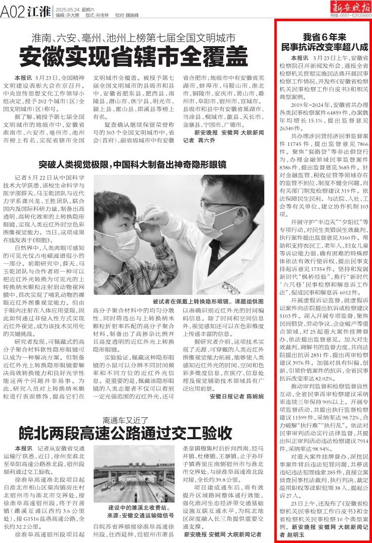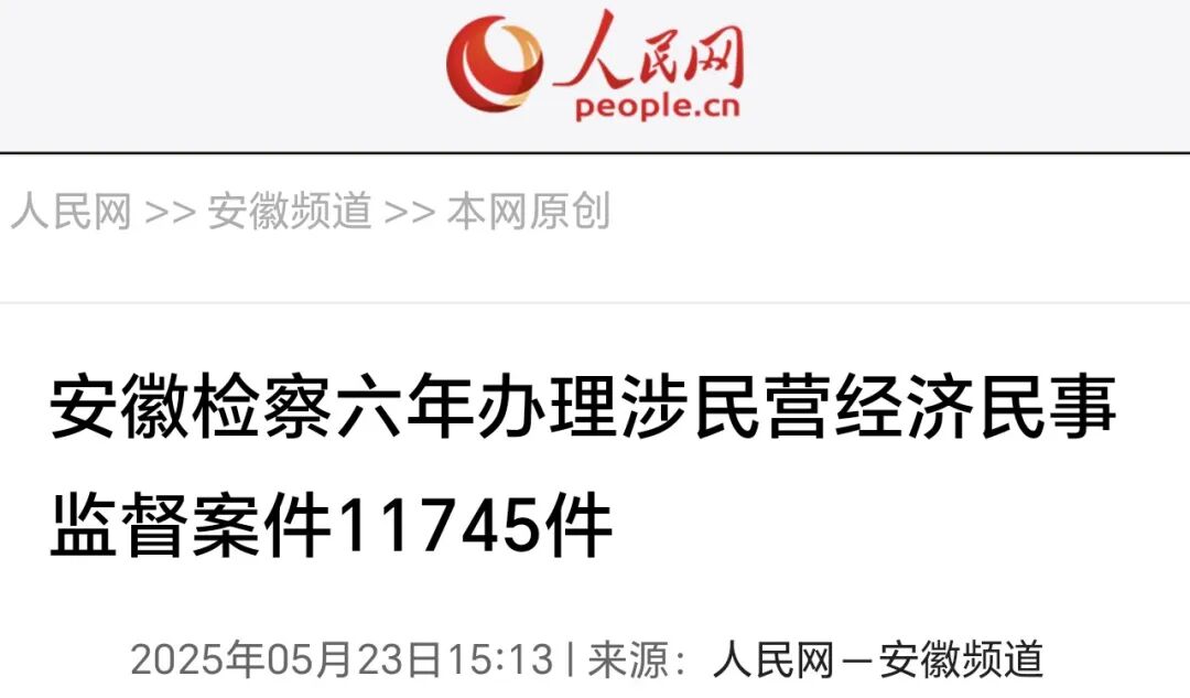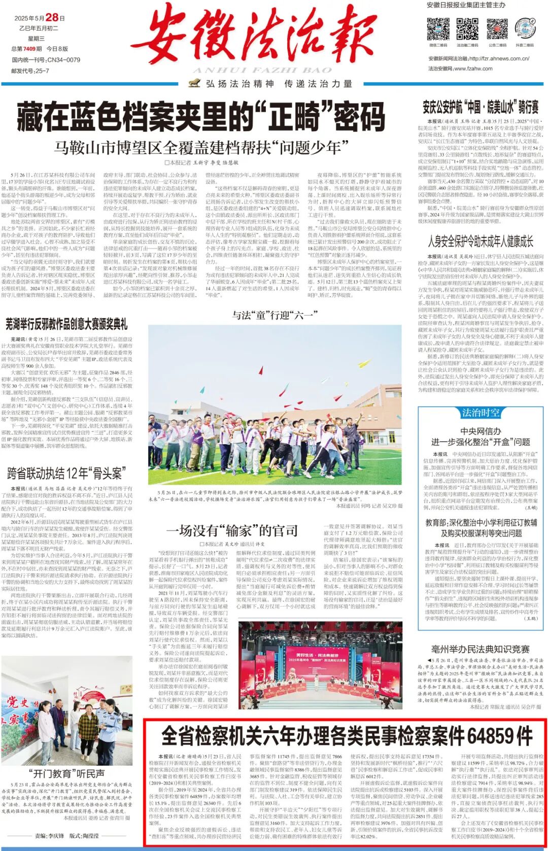 数据显示,2019年至2024年,安徽省共办理民事检察案件64859件,提出监督意见26340件,23起案件入选全国检察机关典型案例,民事检察监督质效持续提升。
