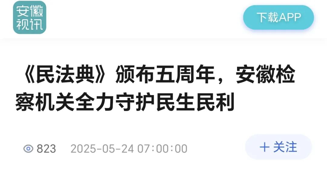 5月23日,省人民检察院召开新闻发布会,通报全省检察机关贯彻实施民法典开展民事检察工作情况,发布《安徽省检察机关民事检察工作白皮书(2019-2024)》和相关典型案例。