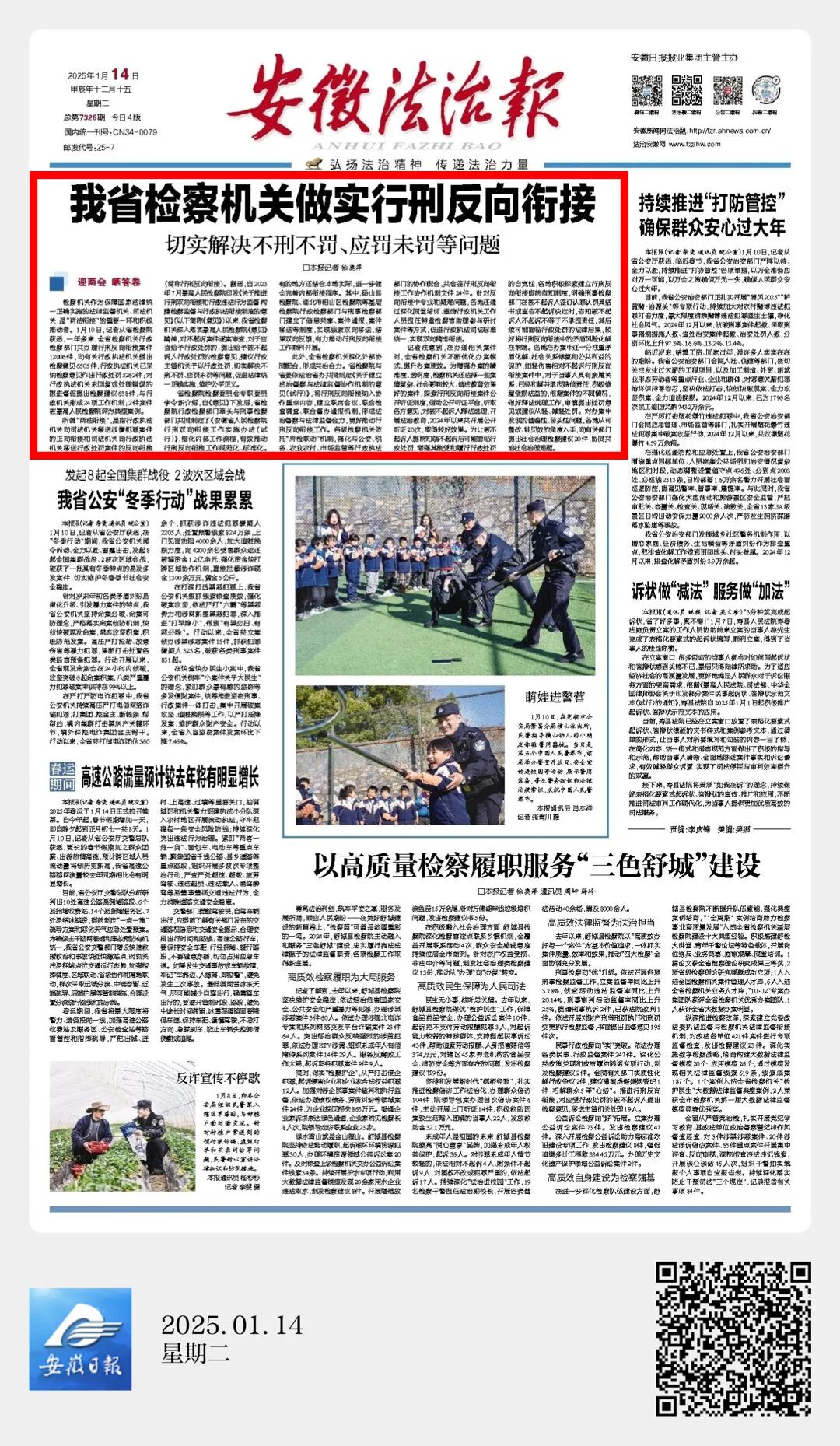 2024年11月14日《安徽法治报》头版头条