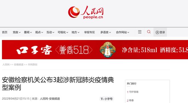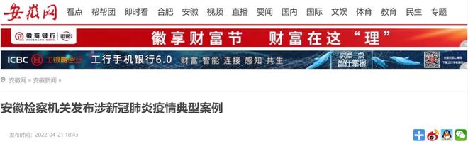4月21日,安徽省检察院对外公布今年以来检察机关依法办理的3起涉新冠肺炎疫情典型案例,并通报两年来全省检察机关能动履职服务防疫大局情况。省内外媒体先后报道~