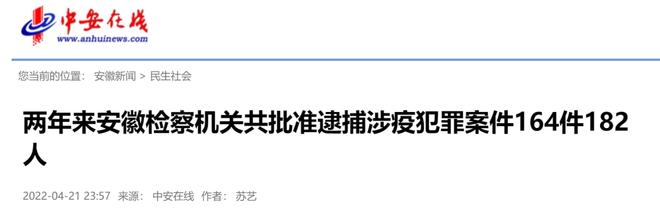 两年来安徽检察机关共批准逮捕涉疫犯罪案件164件182人