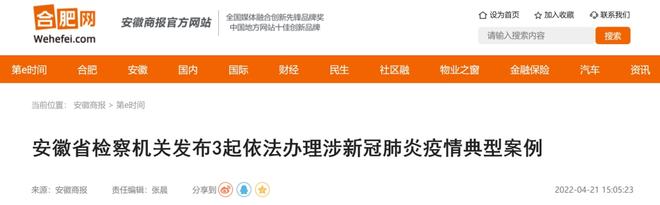 安徽省人民检察院发布3起涉疫典型案例