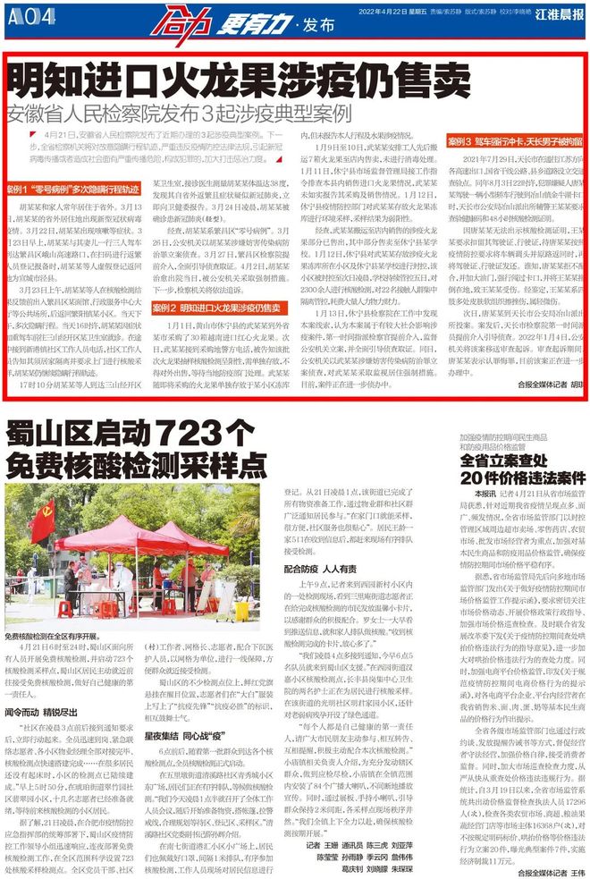 《合肥晚报》(2022年4月22日第A04版)