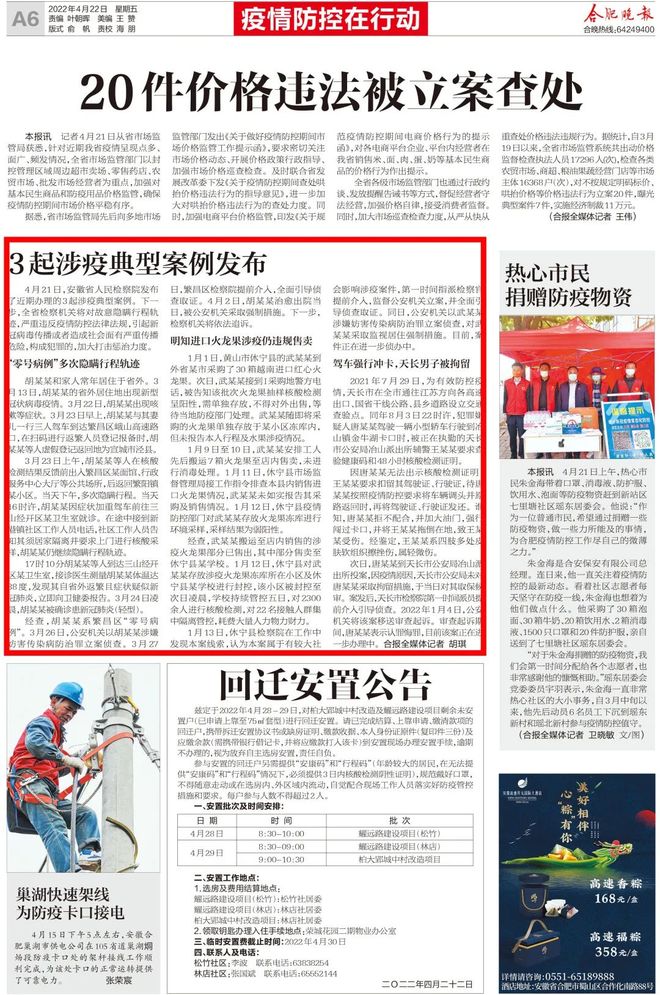 《合肥晚报》(2022年4月22日第A06版)