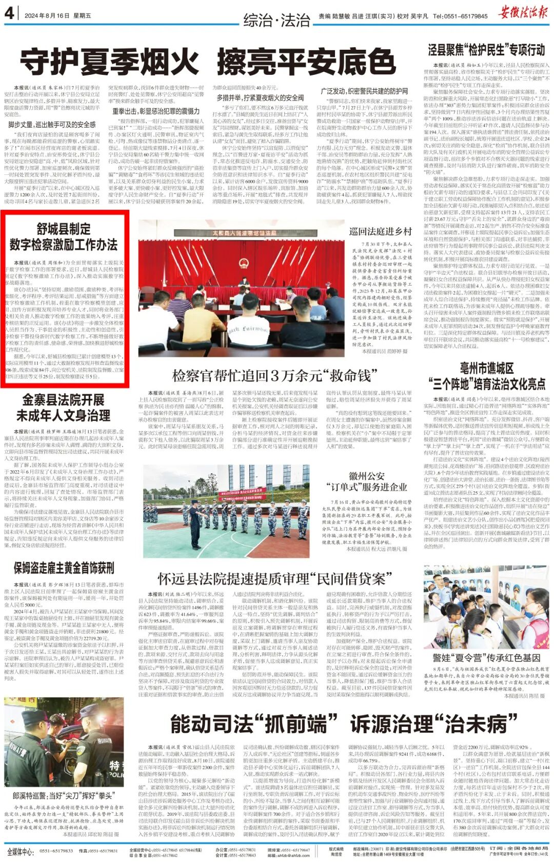 为全面贯彻落实上级院关于数字检察工作的部署要求,近日,舒城县人民检察院制定《数字检察激励工作办法》,深入推动实施数字检察战略落地。