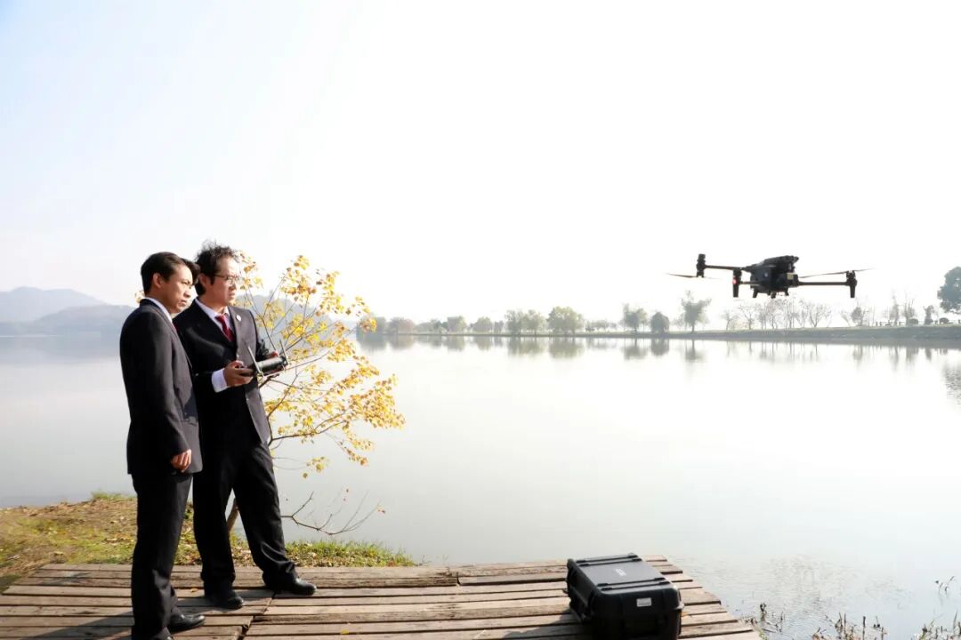 ▲今年3月,池州市贵池区检察院公益诉讼检察官前往平天湖风景区,使用无人机进行实地调查。