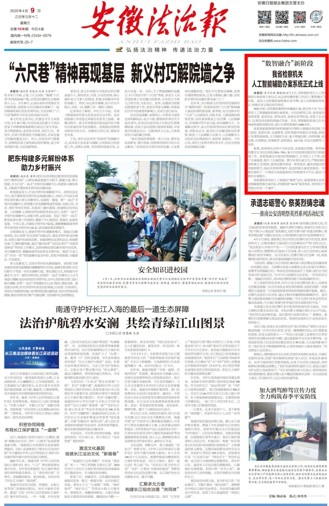 2025年4月9日《安徽法治报》头版