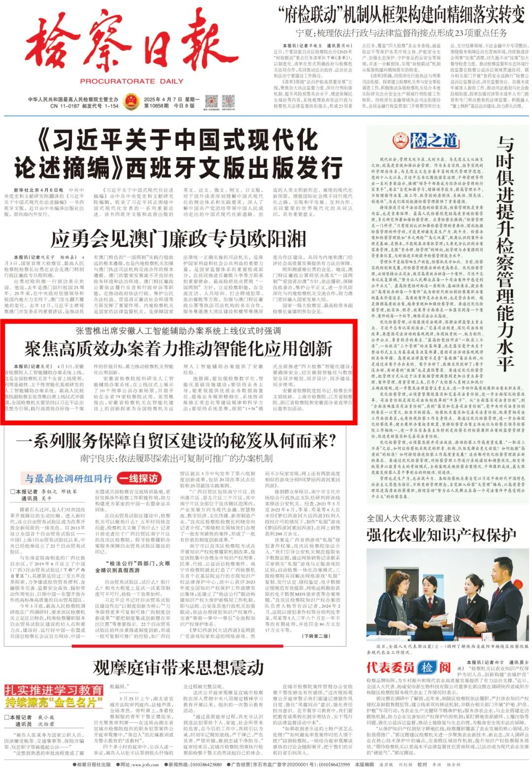 2025年4月7日《检察日报》头版