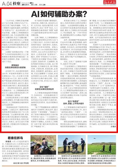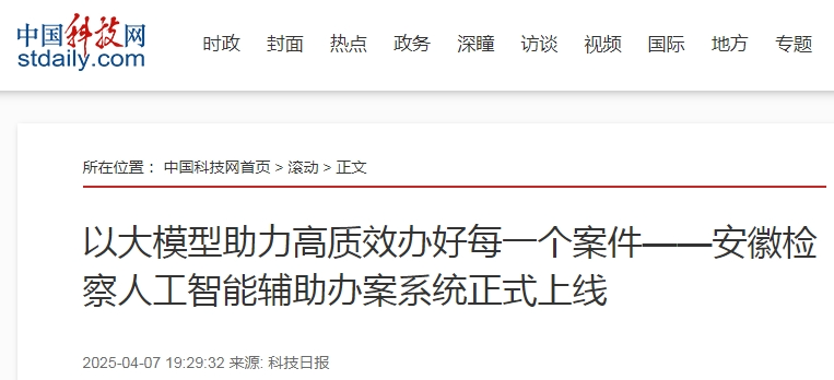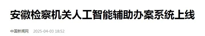 4月3日,安徽省检察院人工智能辅助办案系统正式上线,这是全国检察机关首个全省上线使用,利用基础性、主干性智能化基座研发的人工智能辅助办案系统。中央暨省级新闻媒体进行了集中宣传报道。
