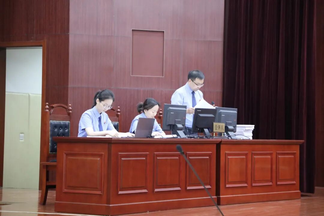 合肥市庐阳区人民检察院副检察长黎俊(左三)出庭公诉。