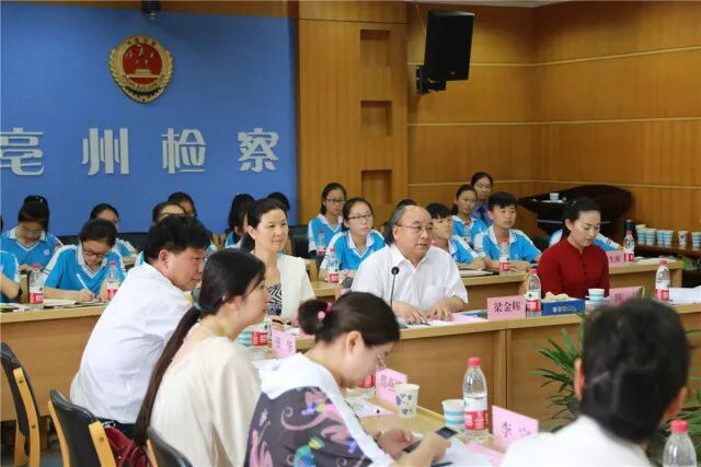 为进一步深化检务公开,推动未成年人检察工作健康发展, 5月31日,在“六一国际儿童节”来临之际,亳州市检察院组织开展以“关爱祖国未来,擦亮未检品牌”为主题的检察开放日活动 ,全国、省、市人大代表、政协委员,教育局、妇联、团市委代表及学校师生代表30余人应邀走进市检察院,零距离感受亳州检察机关未成年人检察工作。 市检察院党组书记、检察长黄世斌,党组副书记、副检察长赵昊平,党组成员、副检察长陈红阳参加活动。