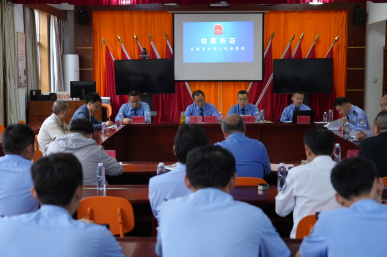 ▲检察官组织在监狱内对胡某某假释监督案件进行公开听证。
