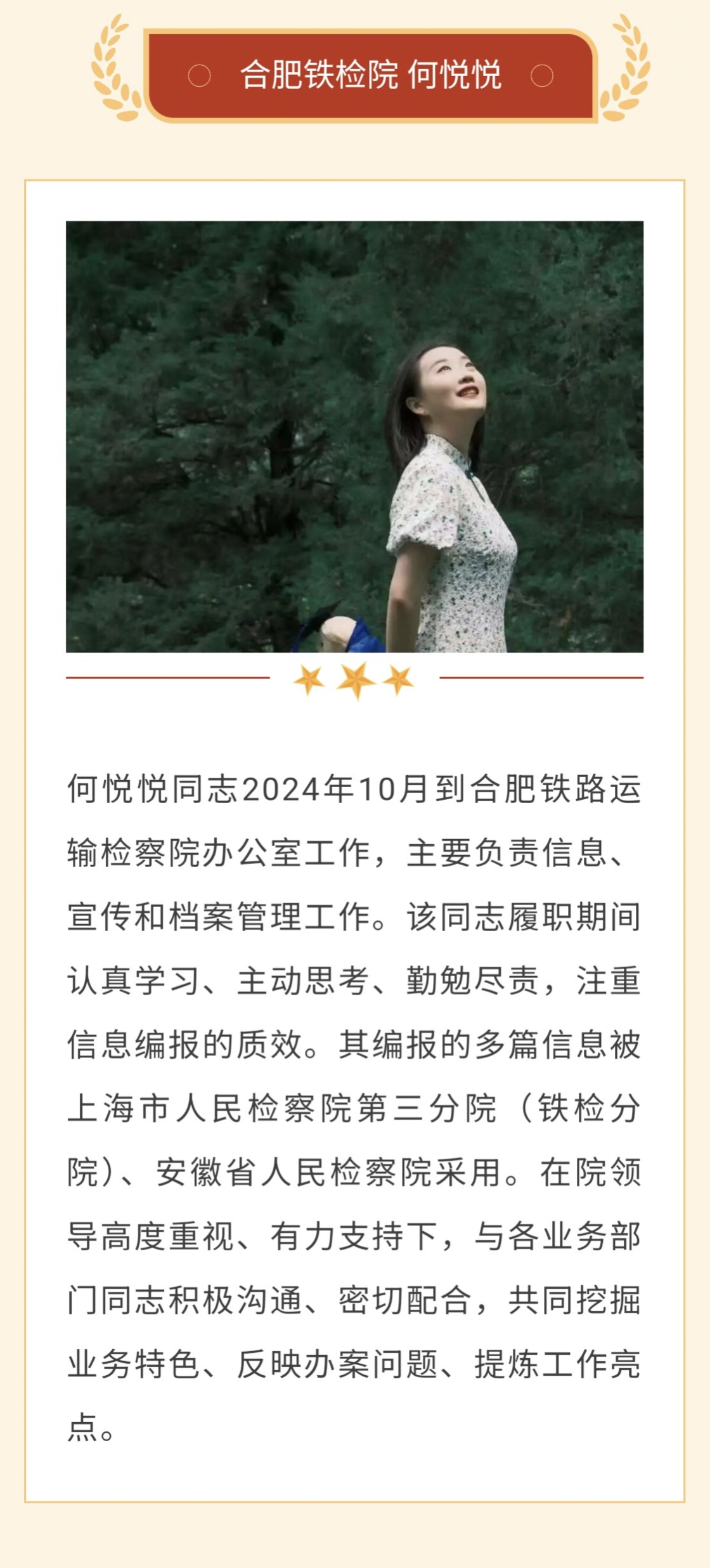 年度优秀信息员、通讯员和保密员,我院干警何悦悦获“优秀信息员”。