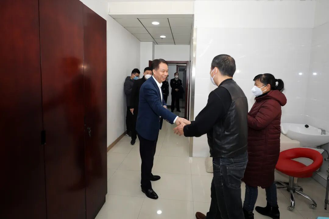 在物业中心、机关理发室、机关食堂,盛大友向工作人员致以亲切地问候,感谢他们在过去一年勤勉尽责,周到服务,“特别是在去年年底的一段时间,机关服务中心的同志不怕苦、不畏难,克服身体不适与人手短缺的极大困难,全力保障了机关服务工作的正常运转,我代表省检察院全体干警向你们致以衷心的感谢与崇高的敬意。”