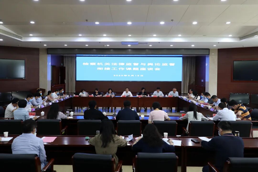 5月19日,安徽省检察院召开检察机关法律监督与舆论监督衔接工作课题座谈会,邀请安徽省委党校(安徽行政学院)政治与法律教研部课题组成员和中央驻皖及省主要新闻单位的有关负责人,与该省检察院主要业务部门负责人一起,就如何高效促进检察机关法律监督与舆论监督衔接贯通、实现“1+1>2”的监督效果展开研讨。