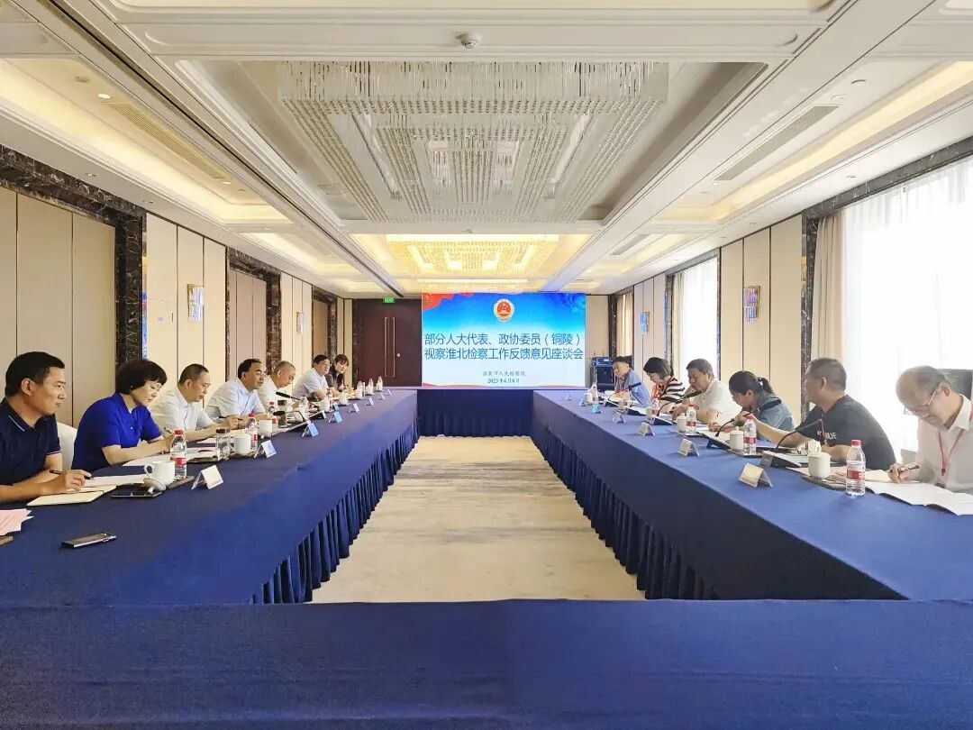 6月8日,来自铜陵市的部分人大代表、政协委员视察团在淮北视察了市检察院、相山区检察院的检察工作,并参加视察活动反馈意见座谈会。省检察院检委会专职委员、一级高级检察官包来友,铜陵市检察院党组书记、检察长杨开江陪同视察。