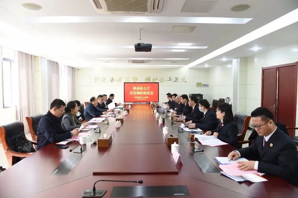 在安庆市大观区检察院和芜湖市湾沚区检察院,调研组分别听取了市、区两级院的工作汇报,并围绕“府检联动”、行刑反向衔接、综合履职等相关问题进行深入交流。