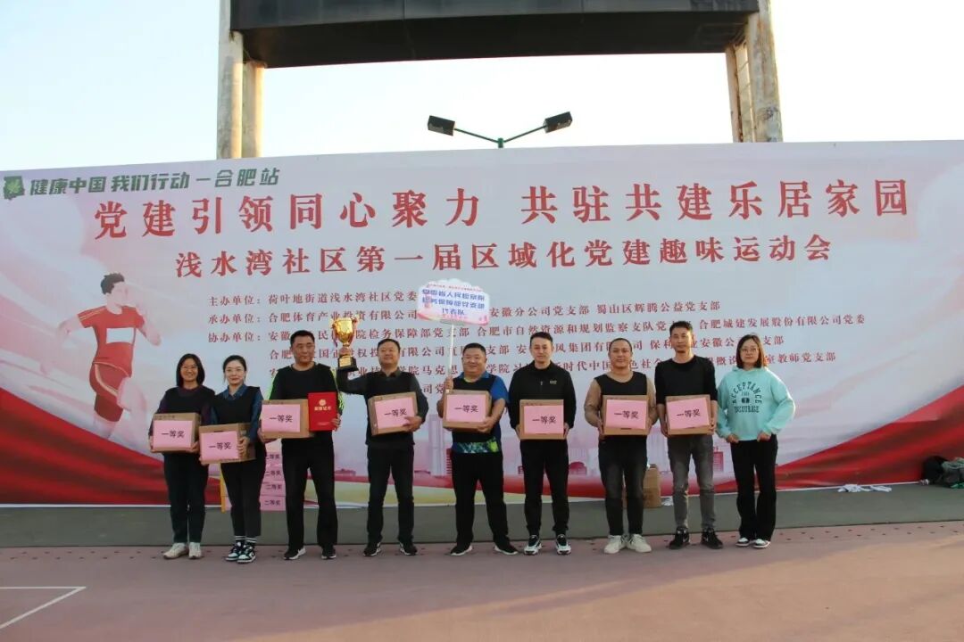 为进一步增强区域党建的组织力、凝聚力和向心力,促进社区党建联席会成员单位的组织共建、资源共享和发展共赢,11月17日,安徽省合肥市荷叶地街道浅水湾社区党委联合共驻共建单位,在合肥体育中心体育场举办“党建引领同心聚力 共驻共建乐居家园”第一届区域化党建趣味运动会,来自机关、企事业单位的9支代表队参赛。经过激烈比拼,省检察院检务保障部党支部代表队荣获团体第一名。