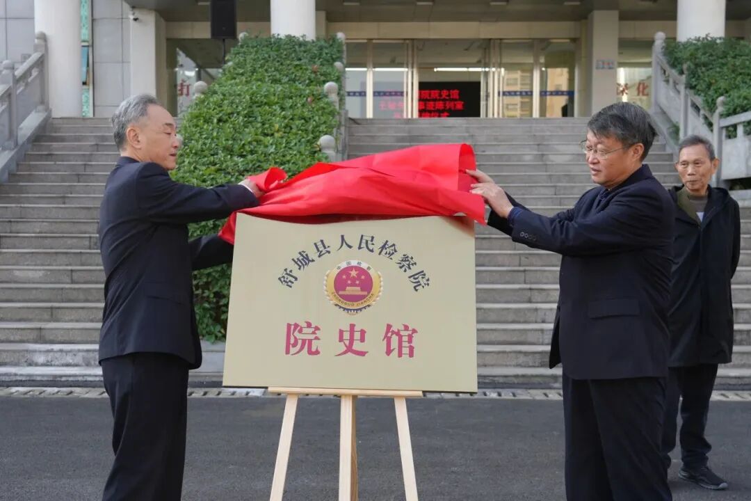 ▲安徽省人民检察院党组成员、政治部主任周勇(左),六安市人民检察院党组书记、检察长唐保银(右)为舒城县人民检察院院史馆揭牌。