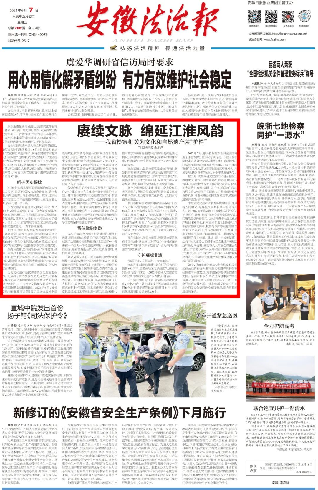 文化和自然遗产是人类文明的珍贵记忆,是历史文脉的生动延续。6月8日将迎来2024年“文化和自然遗产日”,在守护安徽丰富的文化和自然遗产过程中,我省检察机关以“能动履职”为笔,以“呵护文脉”为墨,写下了生动的答卷。2023年以来,全省检察机关聚焦守护传统村落、历史街区、古建筑、革命文物、非物质文化遗产等,共立案办理文物和文化遗产领域公益诉讼案357件。