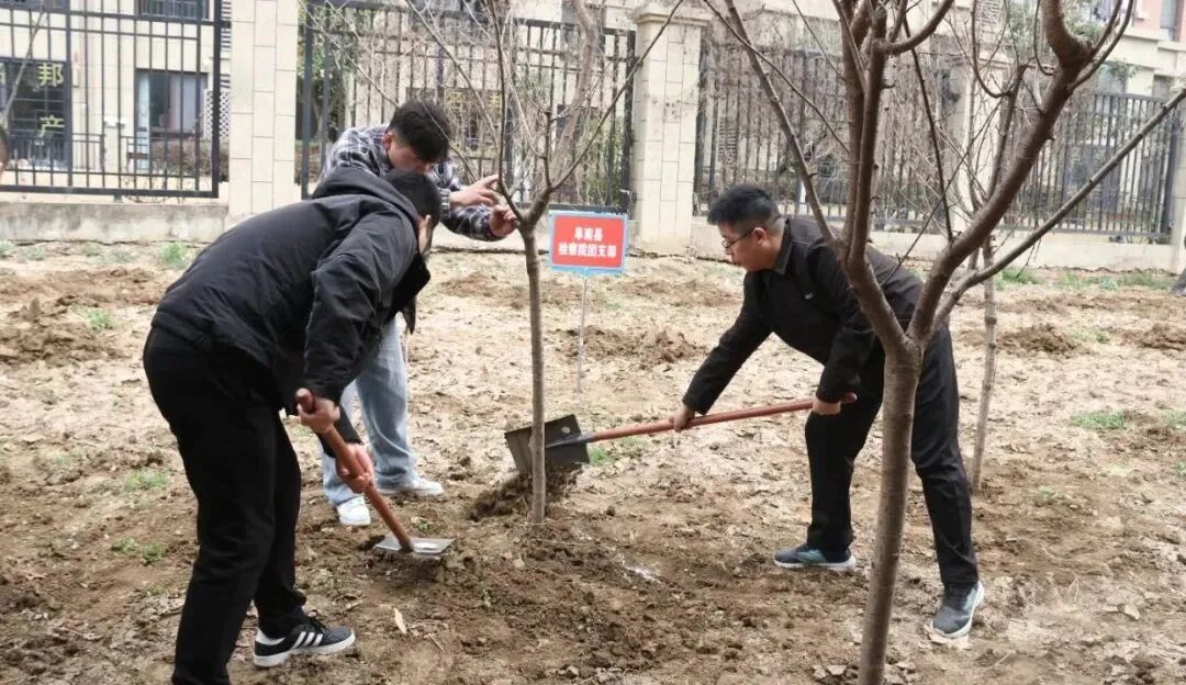 3月11日,铜陵市郊区检察院干警前往灰河乡太阳村参加2025年义务植树节活动,以实际行动为美丽家园添上一抹新绿,谱写生态文明建设的新篇章。