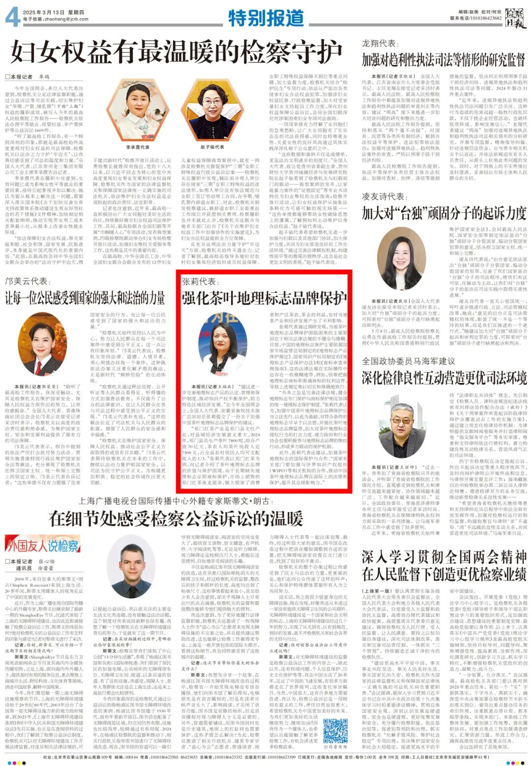 此外,张莉代表还建议,加强茶叶地理标志的国际保护与合作。“国家有关部门要加强与世界知识产权组织(WIPO)等相关机构的合作,推动中国茶叶地理标志品牌在国际上的注册和保护,提升其全球影响力。”