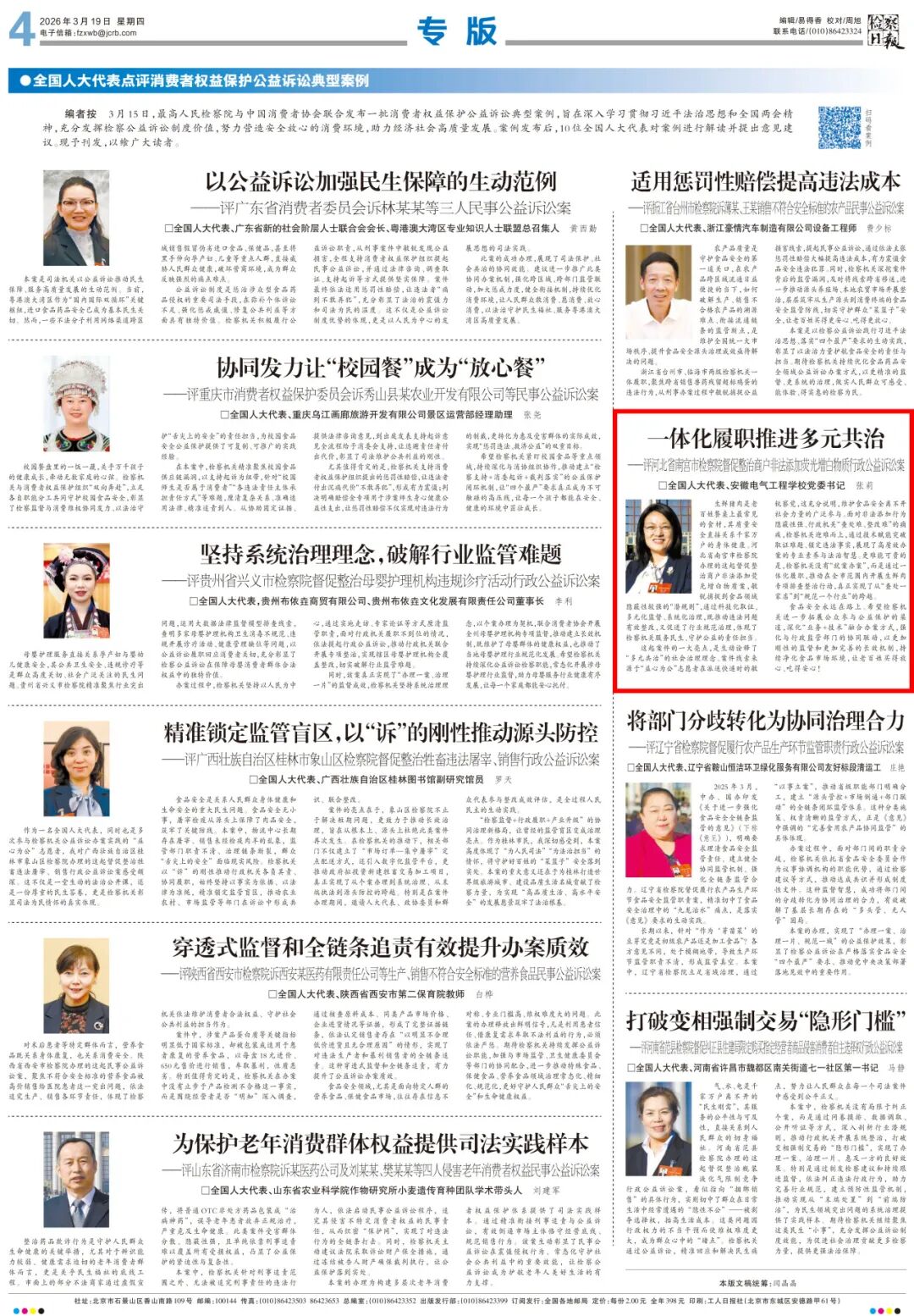 3月15日,最高人民检察院与中国消费者协会联合发布一批消费者权益保护公益诉讼典型案例,旨在深入学习贯彻习近平法治思想和全国两会精神,充分发挥检察公益诉讼制度价值,努力营造安全放心的消费环境,助力经济社会高质量发展。案例发布后,10位全国人大代表对案例进行解读并提出意见建议。现予刊发,以飨广大读者。