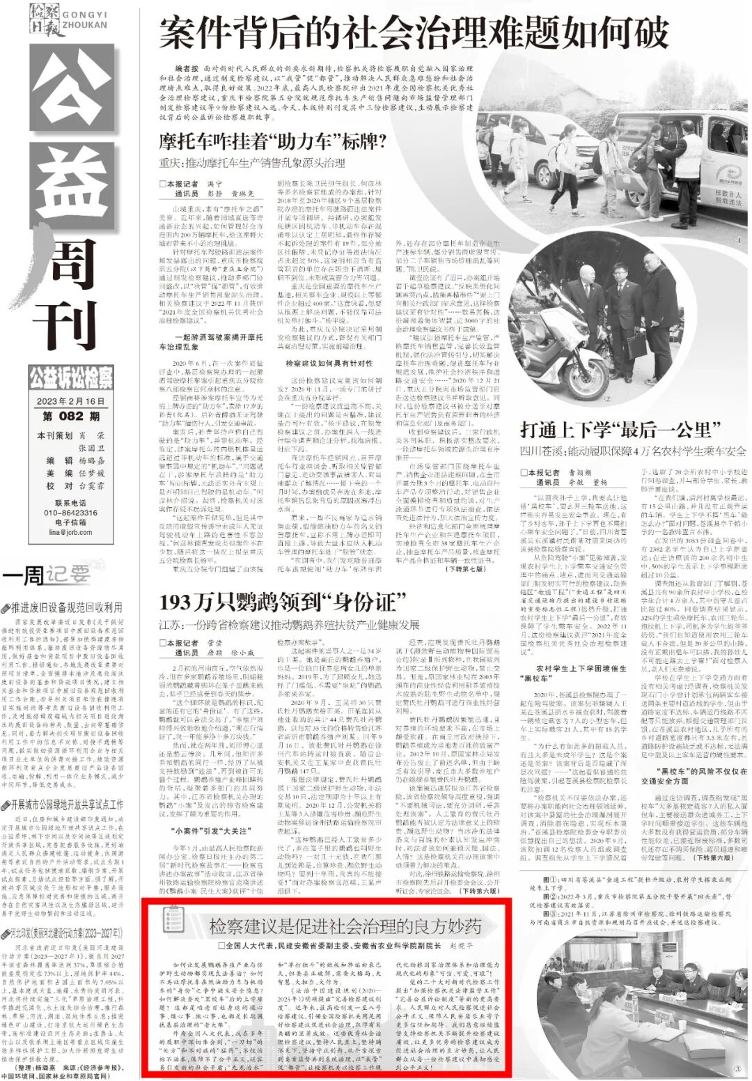 《法治中国建设规划(2020—2025年)》明确提出“完善检察建议制度”。近年来,最高检制发一至八号检察建议,引领全国检察机关用足用好检察建议促进社会治理,取得有目共睹的显著成效。这些优秀社会治理检察建议,坚持人民至上,坚持胸怀天下,坚持守正创新,从个案探索到类案监督再到系统治理,以“我管”促“都管”,让检察机关以检察工作现代化助推国家治理体系和治理能力现代化的形象“可信、可爱、可敬”!