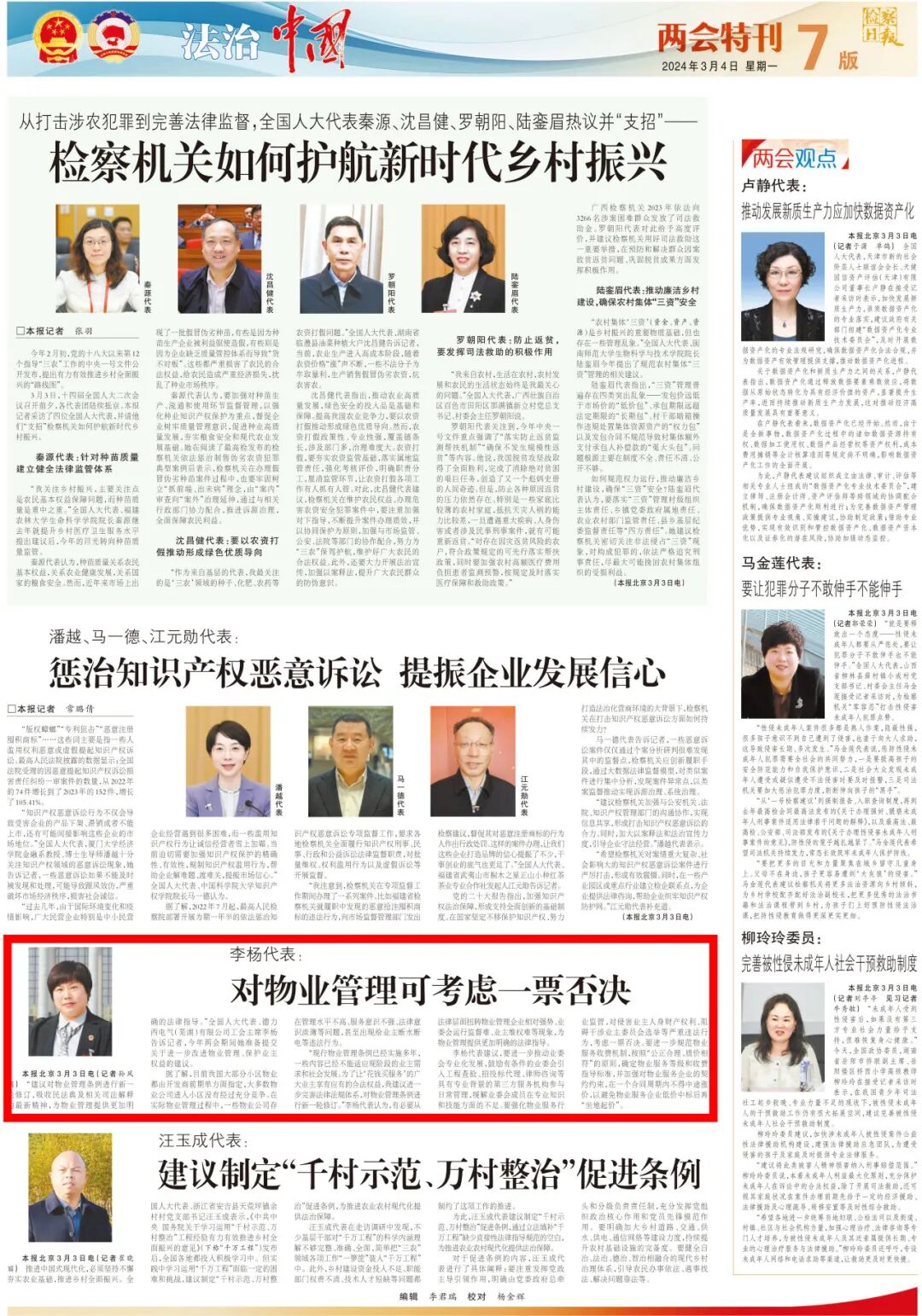 2024年3月4日《检察日报》7版两会特刊