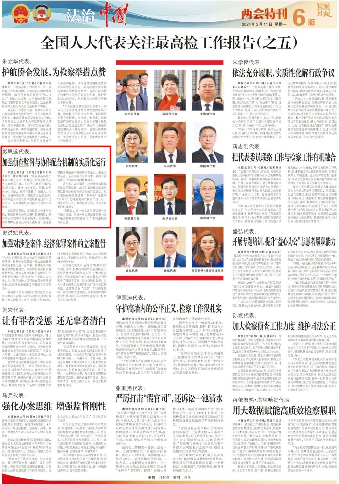 2024年3月11日《检察日报》6版两会特刊