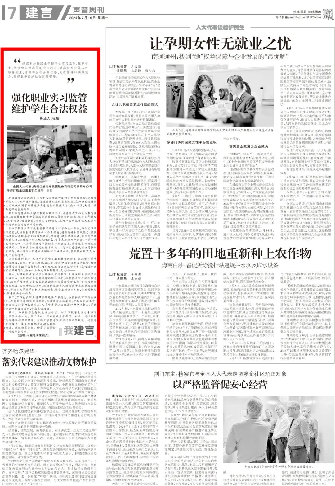 2024年7月15日《检察日报》声音周刊·建言