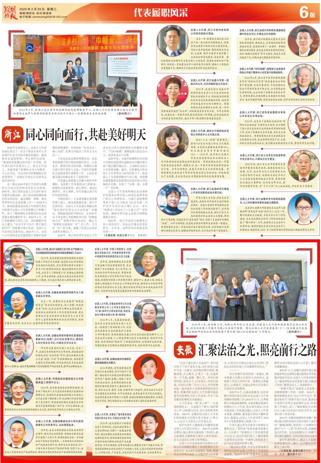 人大代表是一座“连心桥”,一头连着检察机关,一头连着万千群众,倾听群众心声,反映群众诉求,是代表的职责和使命。2024年,安徽团的全国人大代表们和检察机关的联系更为紧密,汇聚合力,以法治之光照亮人民幸福生活。