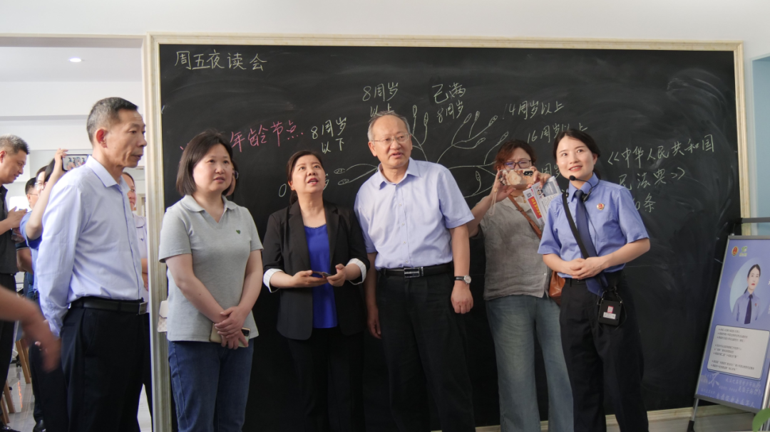 2024年5月,驻安徽六安、马鞍山两市的13名全国、安徽省人大代表和政协委员走进山水宜城,对安庆检察工作展开为期4天的集中视察。图为全国人大代表黄春燕(左二)及安徽省代表委员在桐城市西苑社区听取检察干警介绍“桐心护未联络站”工作情况。 (资料图片)