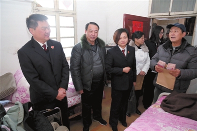 近日,合肥市蜀山区检察院通过刑事司法救助,在上级检察院的支持下,为被害人偶某争取到国家司法救助金4万元,用于其医疗和生活费用。图为检察官将救助金送到了偶某的家中。 黄河/摄
